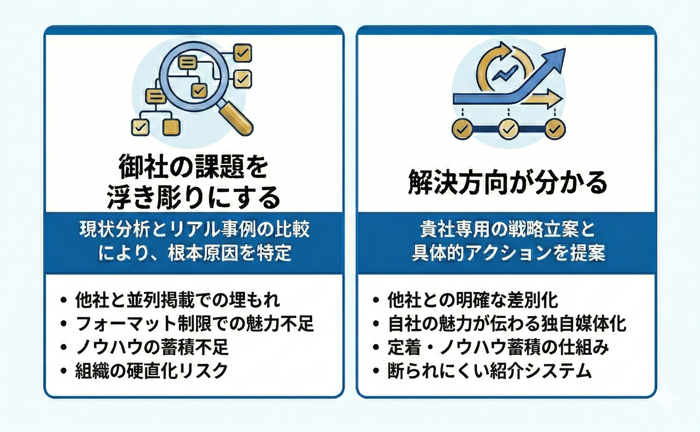 ▶掲載スペースやフォーマットの制限があるため他社との違いを表現しにくい。